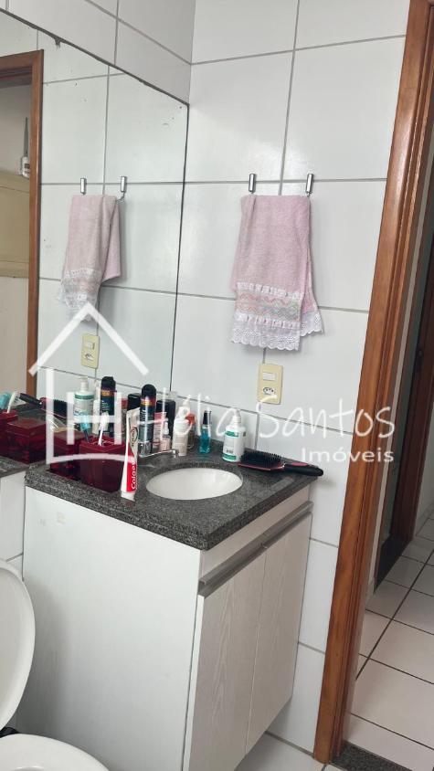 Banheiro: box, chuveiro elétrico, pia com armários planejado.