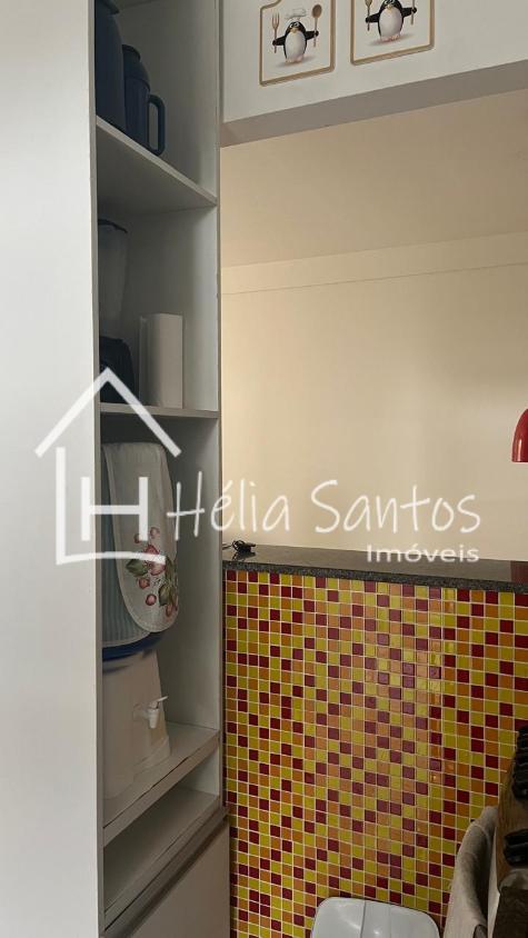 Cozinha: armários planejados, filtro, geladeira, fogão, pratos, copos, talheres, etc